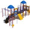 The Figg’s Landing play structure feature’s a variety of engaging activities. Whether you reach the top of the structure via the Lotus Step Climber, Pixel Climber, Vertical Ladder, or Vertical PE Rock Climbing Wall, this offers new challenges for all levels. Kids can explore endless imagination destinations climbing through the Tube Bridge, balancing across the adventuresome Bones Bridge, then racing down one of four slides. The ground level Store Panel promotes imaginative play, while a single drum and ship’s wheel offer creative outlets. This structure can elevate any designated play area and assure there’s no shortage of creative fun!